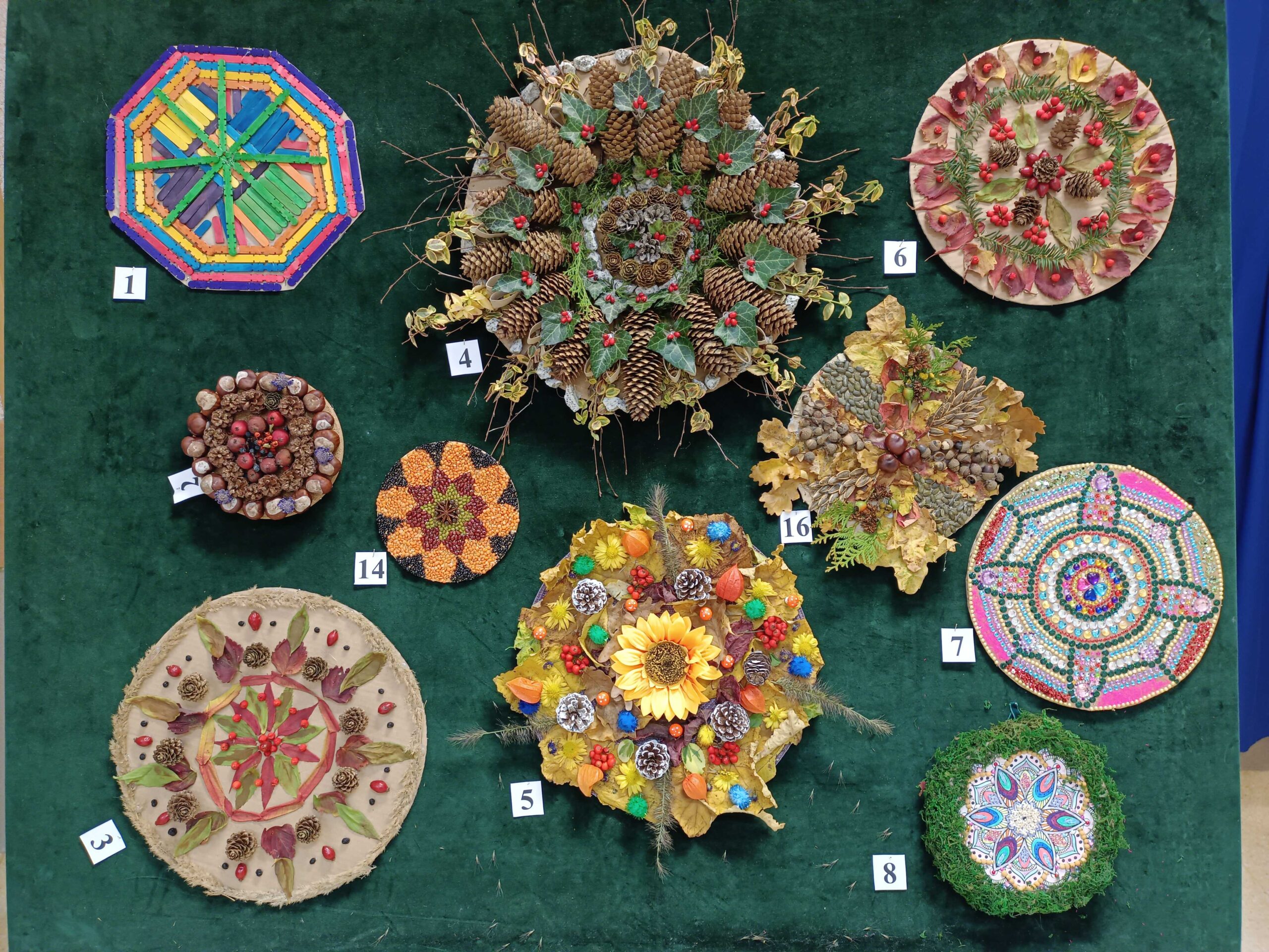 Rozstrzygnięto konkurs praktyczno-techniczny „Jesienna mandala spokoju”. Uczestnicy tworzyli mandale z naturalnych materiałów – kasz, różnorodnych ziaren, koralików i cekinów. Powstały kreatywne, misternie wykonane prace, a komisja wyróżniła najciekawsze z nich. Konkurs cieszył się dużym zainteresowaniem i dostarczył wielu twórczych inspiracji.