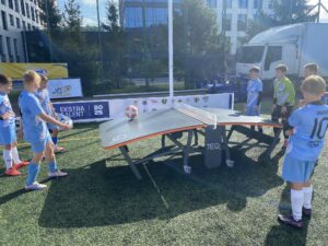Klub z Gdyni zadbał o dodatkowe atrakcje – uczestnicy mogli korzystać z boisk z bandami do gry 1×1 oraz ze stołu do teqballu przygotowanych specjalnie na to wydarzenie oraz otrzymali klubowe gadżety, które były miłym uzupełnieniem całego dnia.