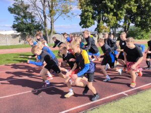 W dniu 29.09.2025r. uczniowie klas od 4 do 8 Szkoły Podstawowej Sportowej wzięli udział w zawodach w lekkoatletyce. Rywalizacja odbyła się na dwóch dystansach biegowych. Krótkim 60m dla klas 4-6 i 100m dla klas 7-8 oraz długim 600m dla klas 4-6 i 800m dla klas 7-8. Na starcie stanęło łacznie około 160 uczniów i uczennic naszej szkoły. Zawody odbyły się przy dość sprzyjającej aurze co zagwarantowało super rywalizację i świetne wyniki sportowe. Były to także eliminacje mające na celu wyłonienie reprezentacji szkoły na zawody międzyszkolne, które odbędą się już w czwartek.