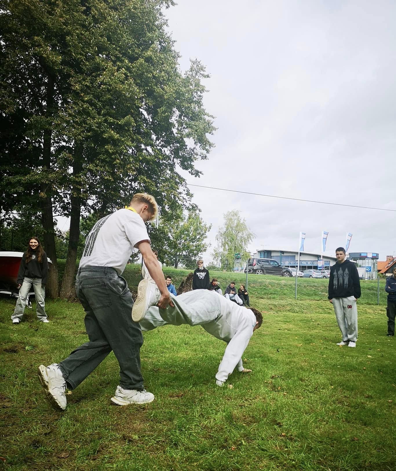 Otrzęsiny klas 1 odbyły się w wesołej… i sportowej atmosferze. Wydarzenie miało charakter integracyjny i przebiegało w przyjaznej i zdrowej rywalizacji. Nie zabrakło śmiechu, oraz wspólnie spędzonego czasu.