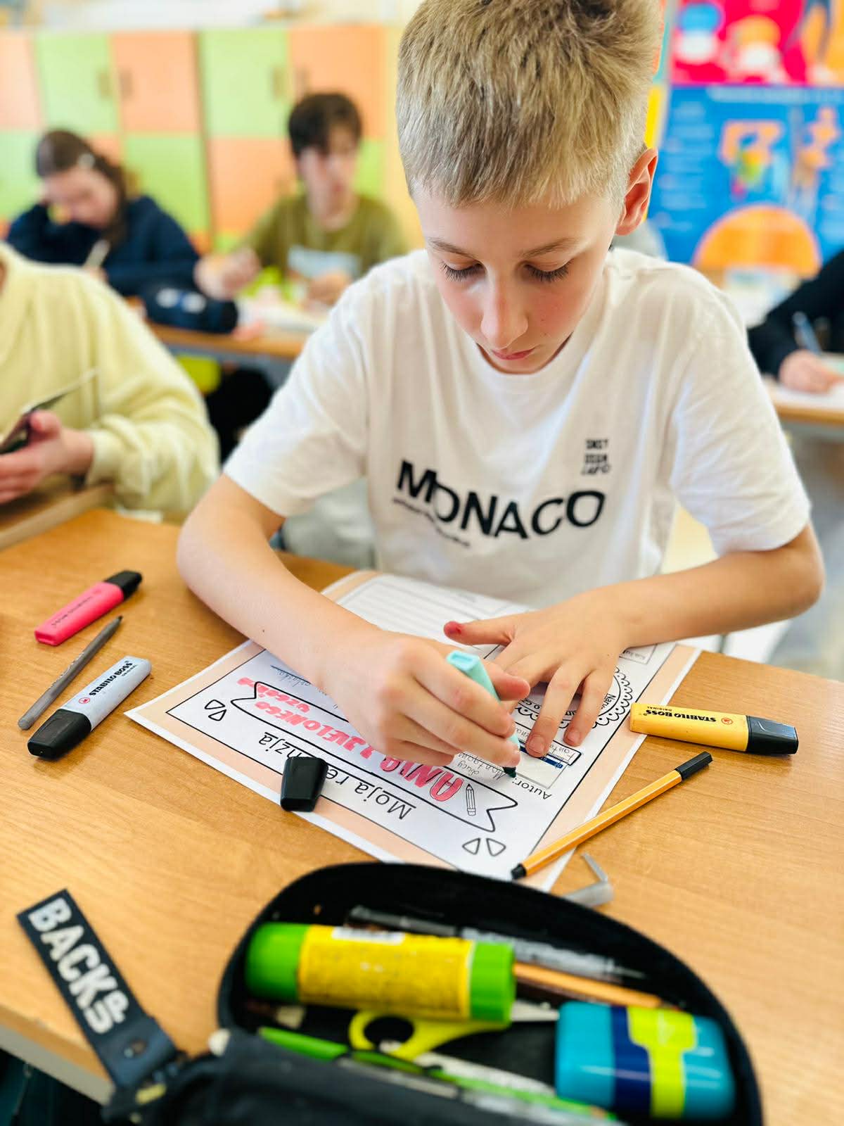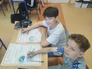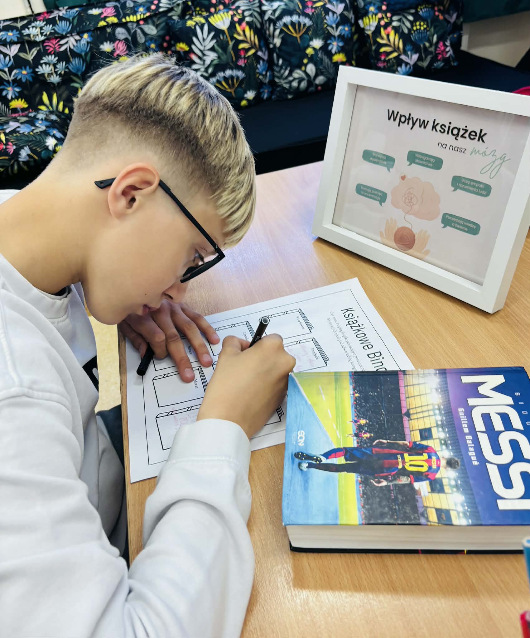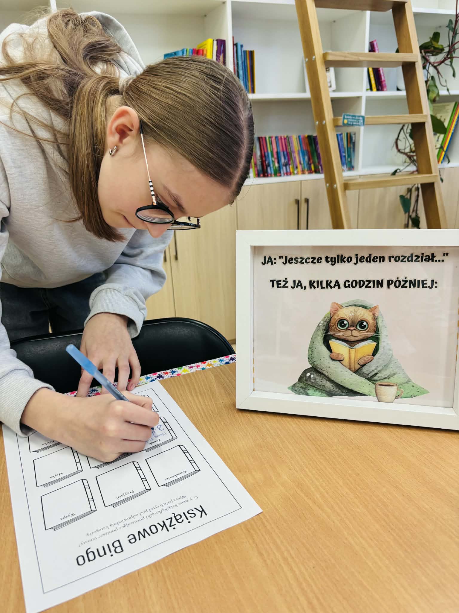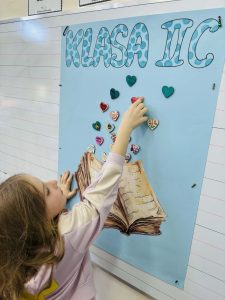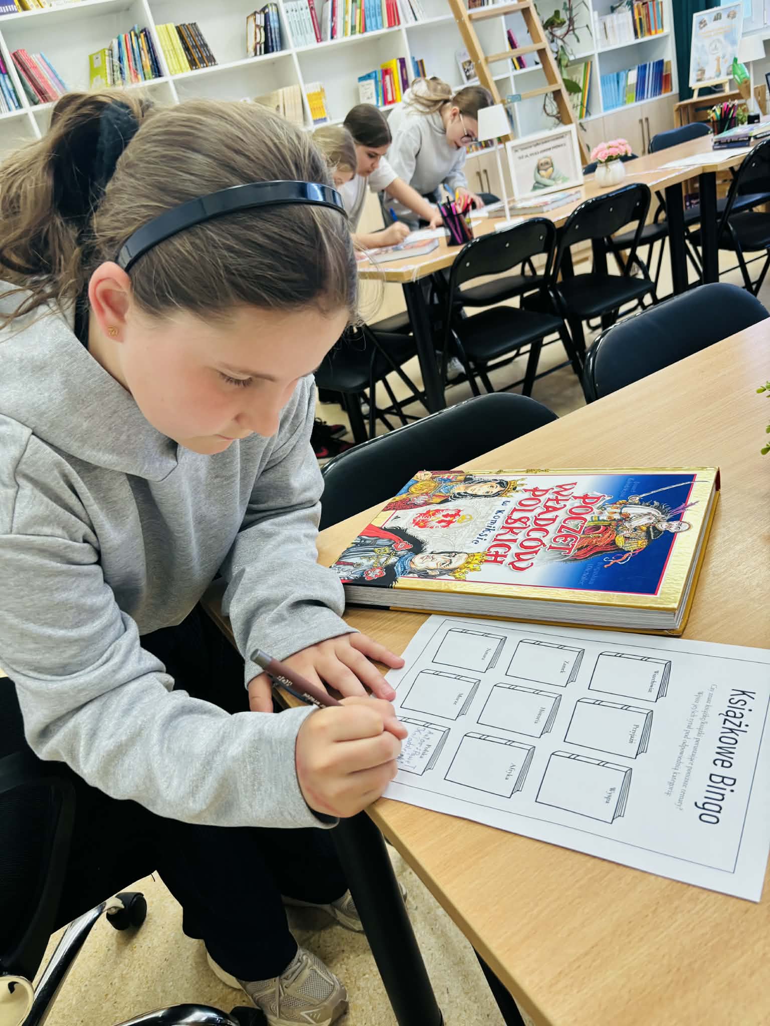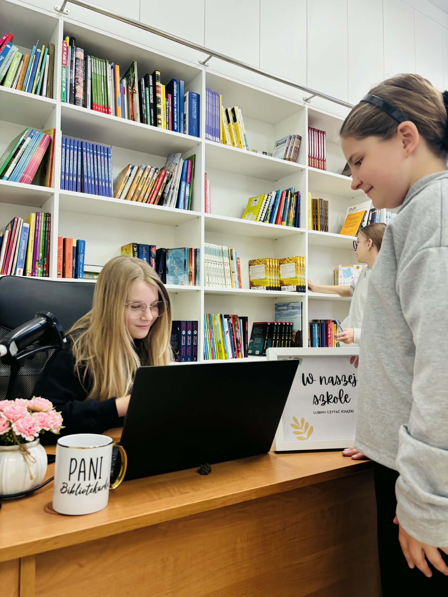 Z okazji Światowego Dnia Książki i Praw Autorskich nasza szkoła zamieniła się w prawdziwie literacką przestrzeń pełną inspiracji i dobrej zabawy 📖✨  Najmłodsi czytelnicy z zainteresowaniem słuchali bajkowych opowieści o książkach, a także brali udział w literackim kole fortuny. Dzieci przygotowywały piękne laurki, „kwiatki dla książki”, a także wyjątkowe serduszka       z życzeniami 💛 Każda klasa dołożyła swoją cegiełkę, tworząc wspólny plakat pełen ciepłych słów skierowanych do książek.  Nie zabrakło również prezentacji przybliżającej istotę tego święta oraz wspólnego tworzenia i projektowania kącików czytelniczych.  Starsi uczniowie zmierzyli się z wyzwaniem w postaci „książkowego bingo 📚” – wyszukiwali w bibliotece książki pasujące do określonych motywów, takich jak: przyjaźń, natura czy morze, podając ich tytuły i autorów.         Wielu z nich podjęło się także napisania recenzji swojej ulubionej książki.  Dodatkową atrakcją była zamiana ról – jedna z uczennic wcieliła się w rolę pani bibliotekarki, co spotkało się z dużym zainteresowaniem i uśmiechem uczniów 😊 To był dzień pełen kreatywności, zaangażowania i prawdziwej radości z czytania!