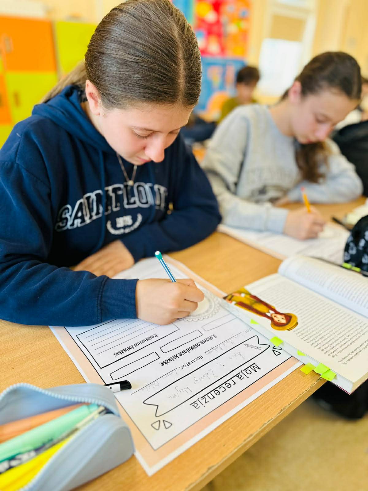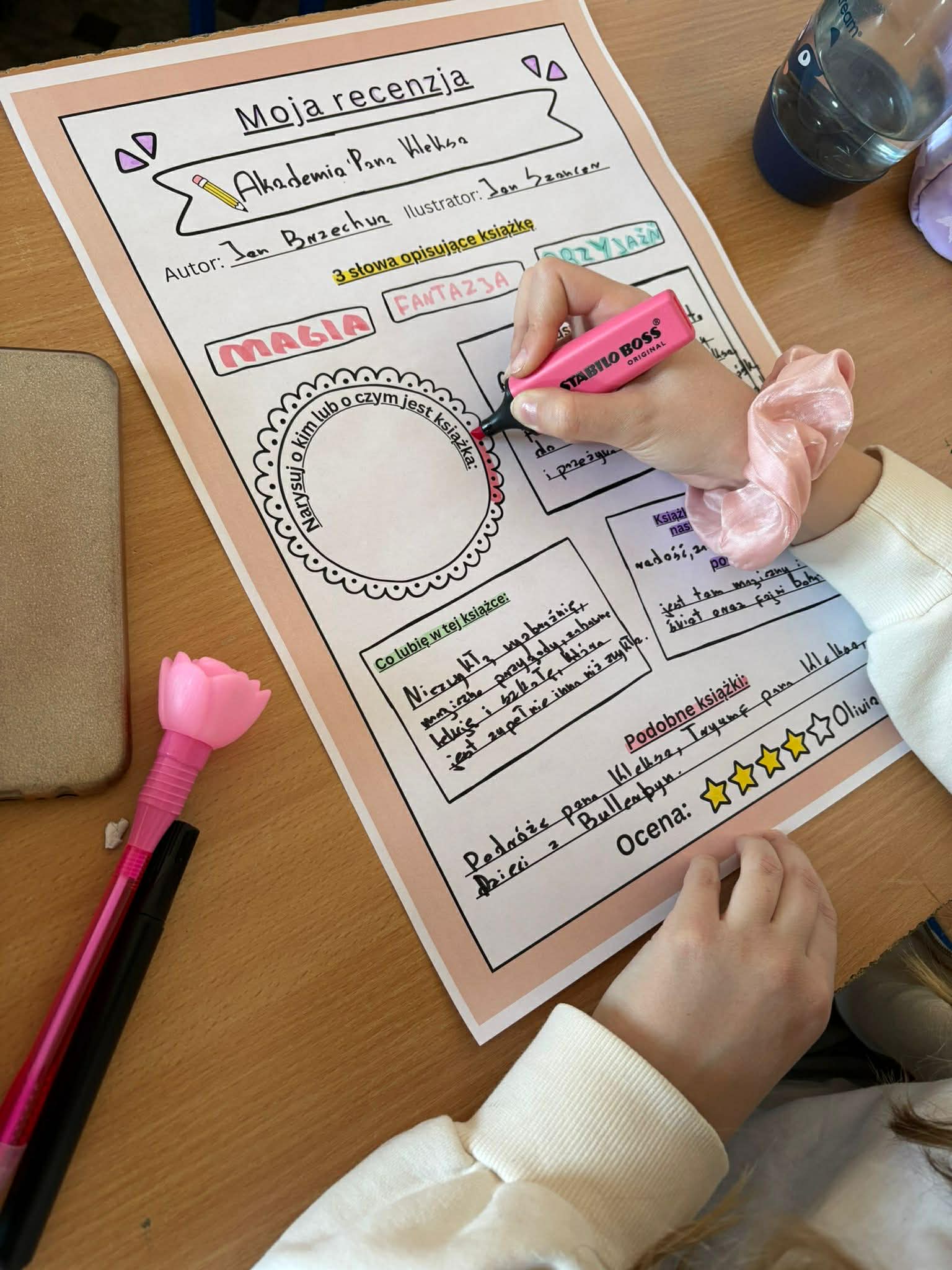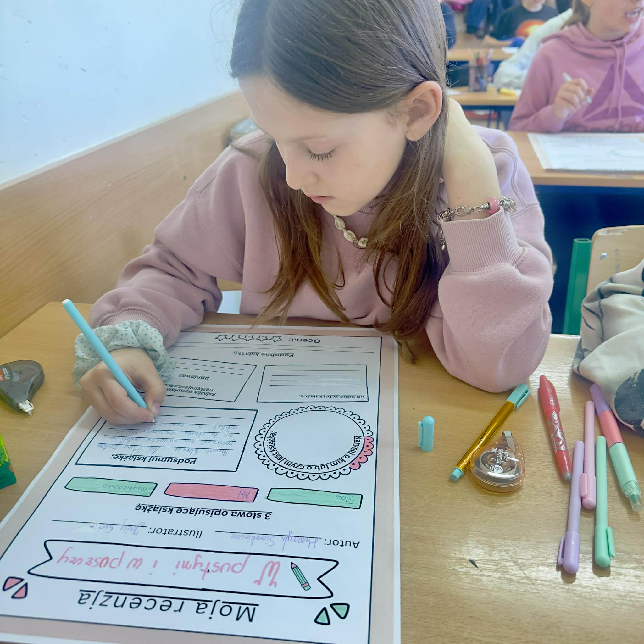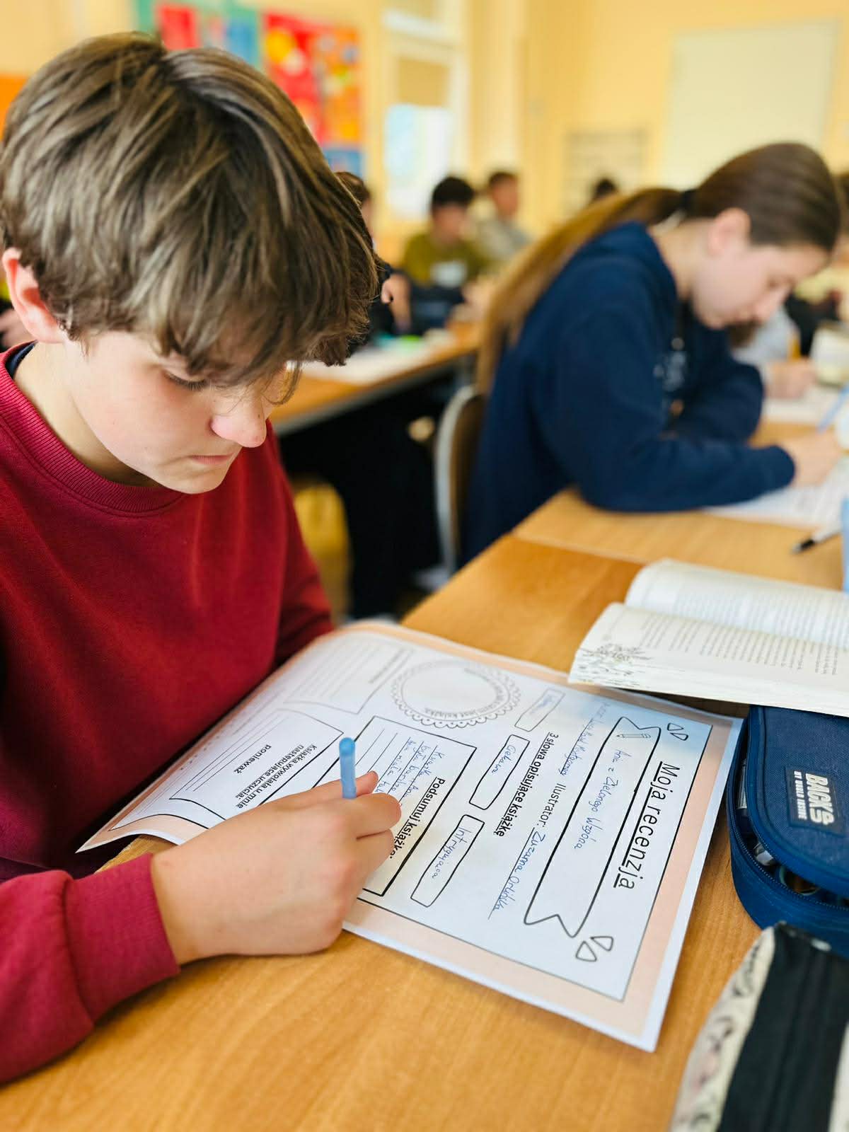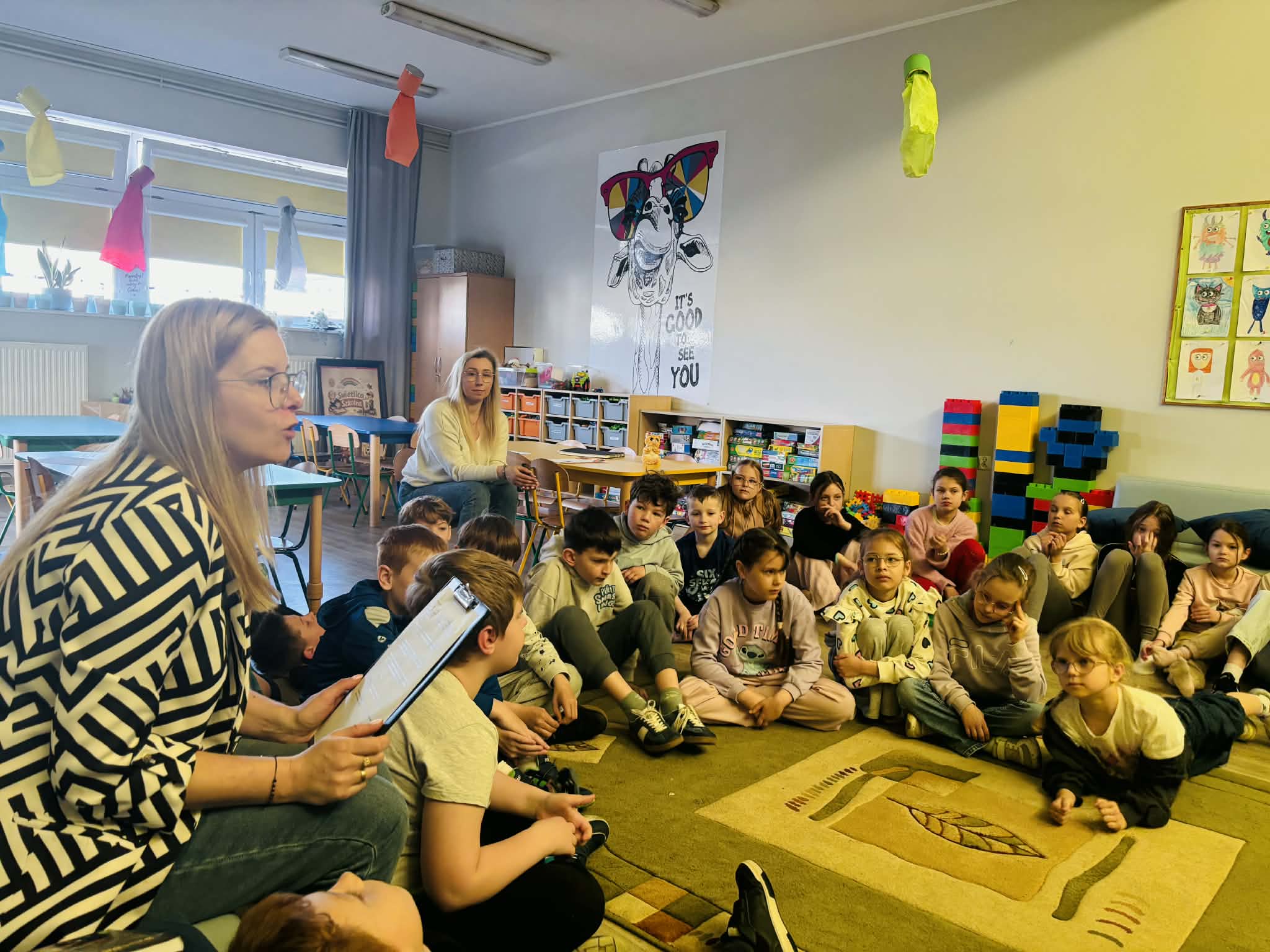 Z okazji Światowego Dnia Książki i Praw Autorskich nasza szkoła zamieniła się w prawdziwie literacką przestrzeń pełną inspiracji i dobrej zabawy 📖✨  Najmłodsi czytelnicy z zainteresowaniem słuchali bajkowych opowieści o książkach, a także brali udział w literackim kole fortuny. Dzieci przygotowywały piękne laurki, „kwiatki dla książki”, a także wyjątkowe serduszka       z życzeniami 💛 Każda klasa dołożyła swoją cegiełkę, tworząc wspólny plakat pełen ciepłych słów skierowanych do książek.  Nie zabrakło również prezentacji przybliżającej istotę tego święta oraz wspólnego tworzenia i projektowania kącików czytelniczych.  Starsi uczniowie zmierzyli się z wyzwaniem w postaci „książkowego bingo 📚” – wyszukiwali w bibliotece książki pasujące do określonych motywów, takich jak: przyjaźń, natura czy morze, podając ich tytuły i autorów.         Wielu z nich podjęło się także napisania recenzji swojej ulubionej książki.  Dodatkową atrakcją była zamiana ról – jedna z uczennic wcieliła się w rolę pani bibliotekarki, co spotkało się z dużym zainteresowaniem i uśmiechem uczniów 😊 To był dzień pełen kreatywności, zaangażowania i prawdziwej radości z czytania!