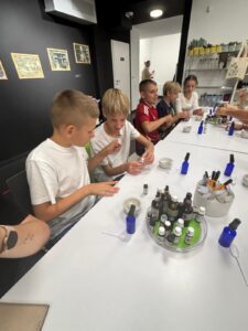 Nasi uczniowie wzięli udział w fascynującej wycieczce do bydgoskiego Exploseum – miejsca, które przeniosło nas w czasy II wojny światowej. Eksponaty i interaktywne wystawy przybliżyły nam historię przemysłową Bydgoszczy oraz tajemnice związane z produkcją materiałów wybuchowych. Kolejnym etapem była wizyta w Aptece pod Łabędziem, gdzie uczniowie uczestniczyli w warsztatach „Woda i zapach”. Podczas zajęć poznali fascynujący świat chemii i fizyki, eksperymentując z wodą i zapachami, a także odkrywając, jak nasze zmysły reagują na różne substancje. To była niezapomniana wycieczka pełna wiedzy i wrażeń!