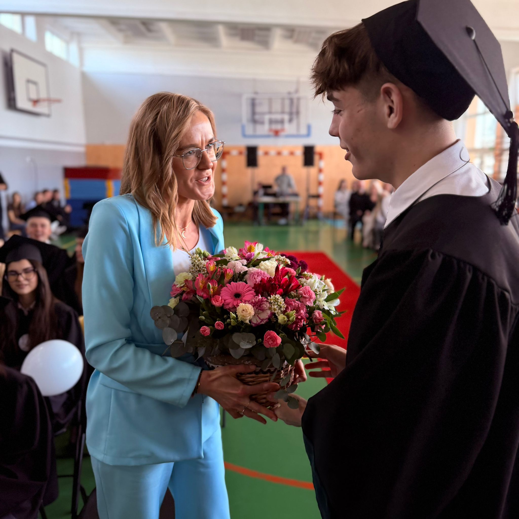 Drodzy Absolwenci – zabierzcie ze sobą nie tylko świadectwa, ale też przyjaźnie, doświadczenia i wartości, które zdobyliście w murach naszej szkoły.